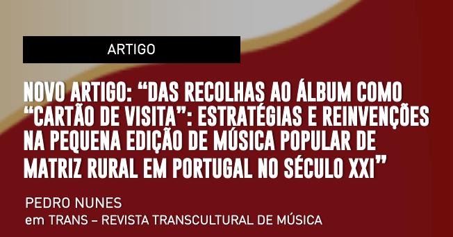 Pedro Nunes, investigador integrado do Instituto de Etnomusicologia – Centro de Estudos em Música e Dança (INET-md) publicou o artigo “Das recolhas ao álbum como “cartão de visita”: estratégias e reinvenções na pequena edição de música popular de matriz rural em Portugal no século XXI” na TRANS – Revista Transcultural de Música, disponível em acesso aberto.