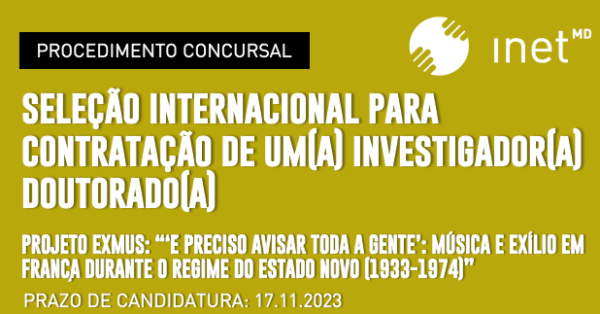 Concurso | Projeto EXMUS: Seleção internacional para a contratação de um(a) investigador(a) doutorado(a)