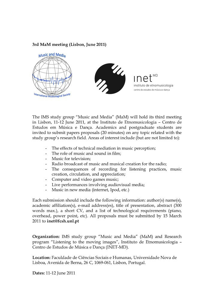 Organization: IMS study group “Music and Media” (MaM) and Research program “Listening to the moving images”, INET-MD.