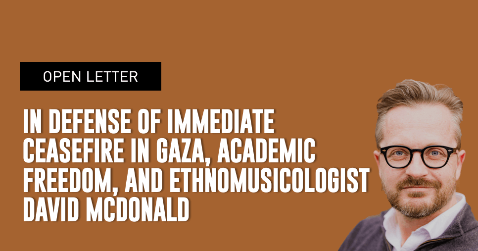 Open letter | In Defense of Immediate Ceasefire in Gaza, Academic Freedom, and Ethnomusicologist David McDonald
