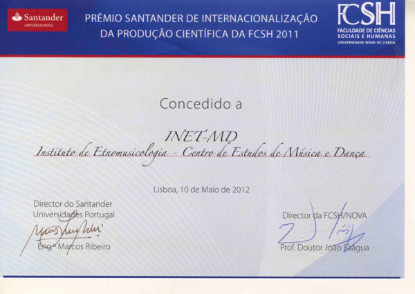 INET-md receives the Santander Prize for the Internationalization of the Scientific Production of FCSH 2011