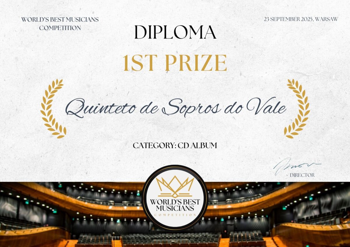 The Quinteto de Sopros do Vale was awarded 1st Prize at the World’s Best Musicians Competition with the CD “Revolution and Freedom: Portuguese works for woodwind quintet”.
