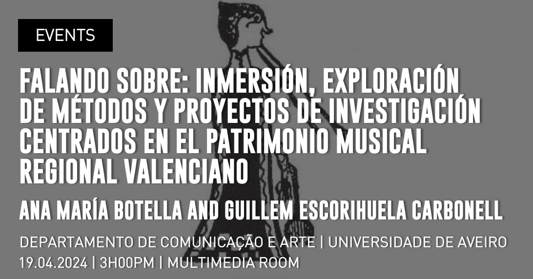 Labeamus – Laboratório de Ensino e Aprendizagem de Músicas da Universidade de Aveiro (UA), INET-md, is organising, in partnership with Erasmus+, the seminar “Falando sobre: Inmersión, exploración de métodos y proyectos de investigación centrados en el patrimonio musical regional valenciano”. The event takes place on 19th April at 3pm in multimedia room at the Departamento de Comunicação e Arte da Universidade de Aveiro.