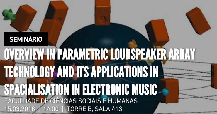 The discovery of the parametric acoustic array has come a long way since it was theoretically analyzed in the 60s. Since then, many applications were proposed in diverse contexts including military, tomography and artistic installations. This technology allows perfect sound directionally, and can be used as an expressive technique in electroacoustic music, allowing a very peculiar sound spatialisation. For such reason, it’s here treated as a idiosyncrasy, worth discussing on its own terms. During this seminar, we will present the theoretical framework of the parametric acoustic array, and then illustrate some audio applications through Jaime Reis’ music compositions, including “A Anamnese das Constantes Ocultas”, commissioned by Grupo de Música Contemporânea de Lisboa, as well as “Jeux de l’Espace”.