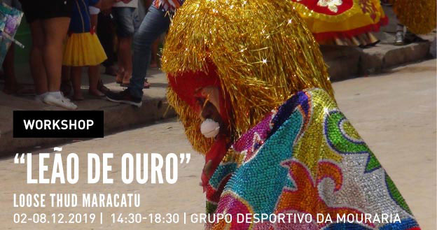 The “loose thud” Maracatu, also known as rural Maracatu, is a music / dance / poetry performance that takes place during Carnival season in the interior of the state of Pernambuco (Brazil), and can gather up to 200 people. A Maracatu performance is a neighborhood party, a poetic competition, an ancestor worship, a community protection ritual … “and much more,” as the inhabitants of the Pernambuco North Forest Zone claim. Over the course of a week, 12 members of the Maracatu “Leão de Ouro” of Condado, champion of various editions of the Carnival of Recife, will occupy the headquarters of the Mouraria Sports Group, recreating the activities that take place at a Maracatu headquarters: making a banner, sew a costume, rehearse dance “maneuvers” (collective choreography), “beat” the instruments of the “suit” (5 percussions), decorate a verse (makeshift rhymes) … and much more! The purpose of this artistic and human residence is to engage interested people to form a complete Maracatu group and “play in the street” by parading through the Mouraria neighborhood. Pernambuco artist Hélder Vasconcelos (founding member of internationally renowned bands such as “Mestre Ambrósio”) will conduct “pulse presence” workshops for musicians, actors and dancers, in which the traditional knowledge of Pernambuco’s interior is reworked in a contemporary vision.