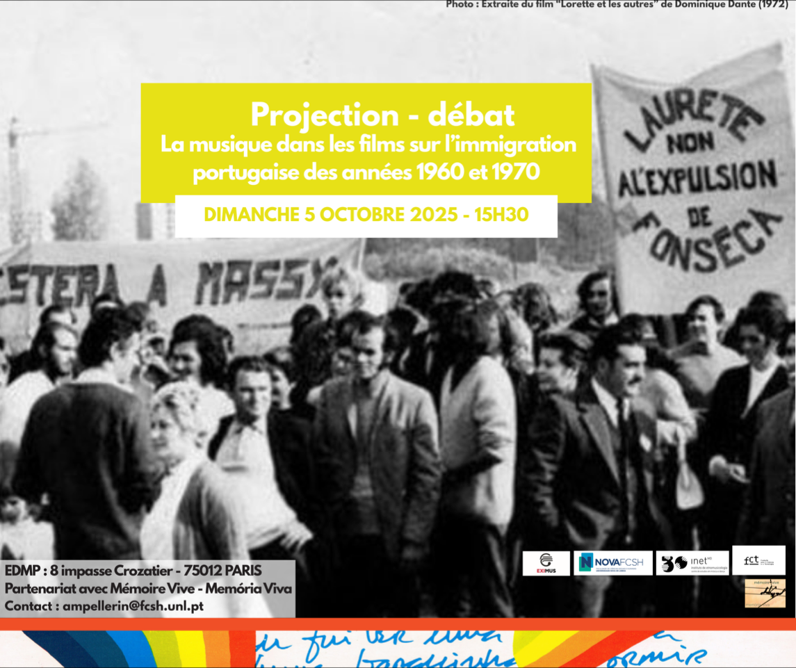 O INET-md e o projeto EXIMUS, em parceria com a Associação Mémoire vive – Memória viva, propõem um evento sobre música e cinema, em complemento à exposição “Chansons de l’exil portugais à l’aube de la Révolution des œillets (1974)“, agora patente em Paris.