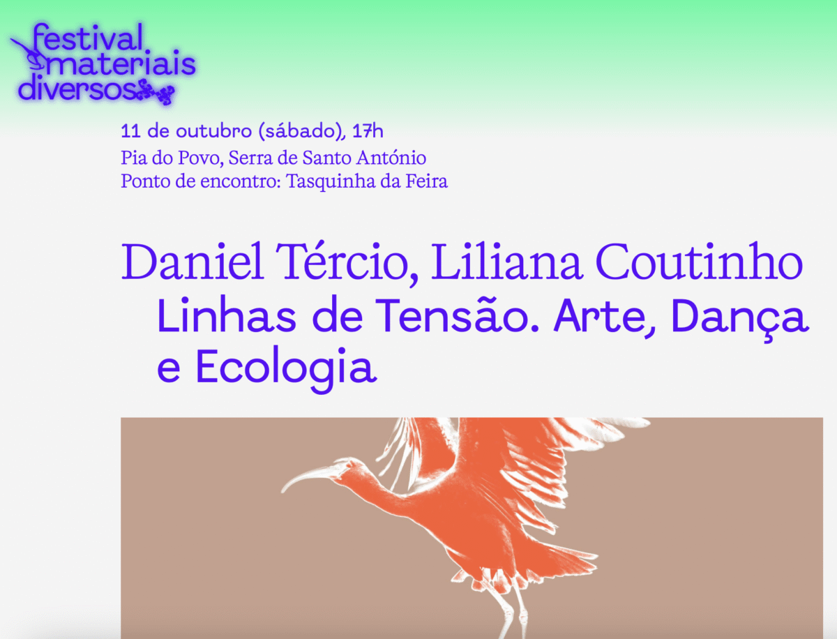 Nos dias 11 e 17 de outubro, o projeto Linhas de Tensão. Arte, Dança e Ecologia da autoria de Daniel Tércio, investigador integrado do Grupo de Estudos em Dança do INET-md, promoverá dois eventos de lançamento do livro, com a presença do autor, acompanhados de uma oficina orientada por um convidado.