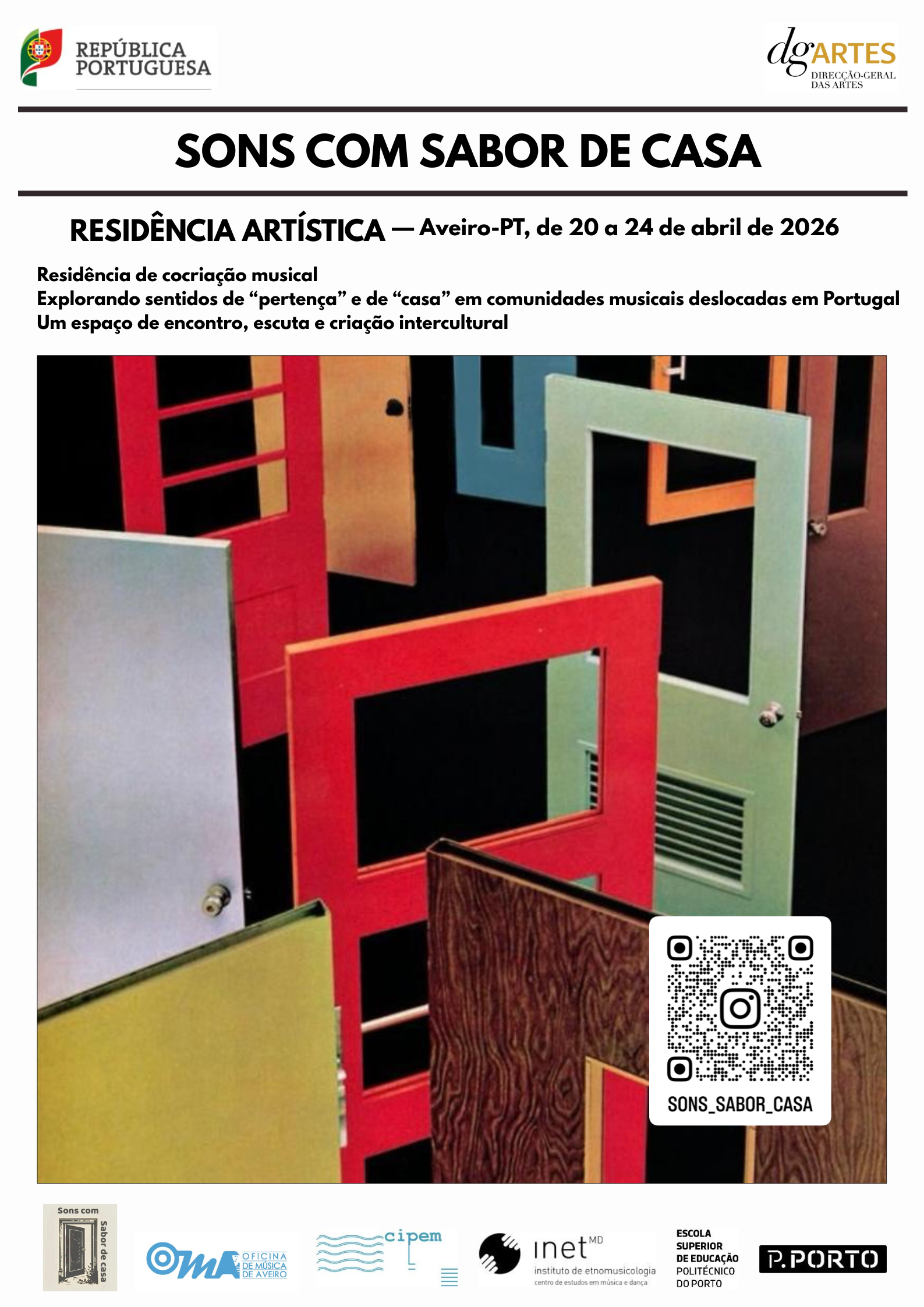 No âmbito do projeto “Sons com Sabor de Casa”, financiado pela DGArtes, realizar-se-á uma residência artística de cocriação musical. Esta servirá para explorar os sentidos de “pertença” e de “casa” em comunidades musicais deslocadas em Portugal.